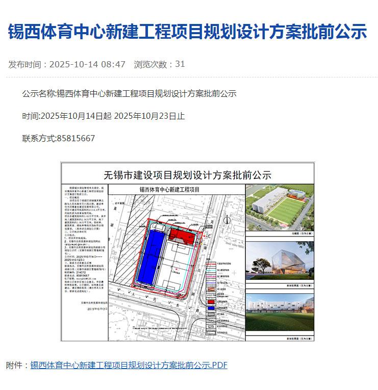 无锡将新建一座体育中心!